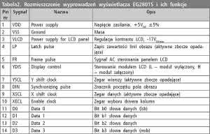 Ostatni z sygnałów kontrolnych wyświetlacza EG2801S, tj. YDIS sterujący załączaniem i wyłączaniem modułu LCD, jest uzyskiwany w drodze programowej obsługi linii nr 2 portu PA.