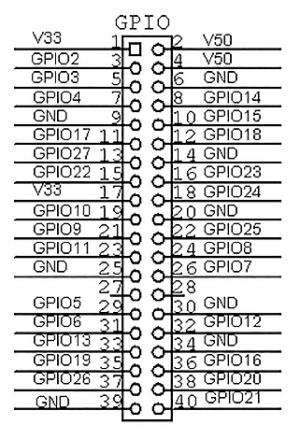 Rozszerzone zostało złącze GPIO z 26 do 40 pin, przy zachowaniu zgodności pierwszych 26 wyprowadzeń GPIO. Rozmieszczenie sygnałów GPIO na złączu pokazano na rysunku 3.