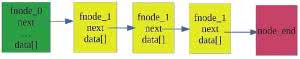 Jednostka alokacji typu fnode_1 zawiera jedynie identyfikator pola type = 1 oraz adres następnej jednostki alokacji, po czym następują właściwe dane do przechowania. Jeśli pole danych nie zmieści się w kolejnej jednostce alokacji typu fnode_1, wówczas pole next będzie zawierało adres kolejnej jednostki alokacji lub wartość node_end, jeśli jest to ostatnia jednostka alokacji. Na rysunku 4 przedstawiono przykład przedstawiający przydział jednostek alokacji dla dłuższej zmiennej, która wymaga kilku jednostek.