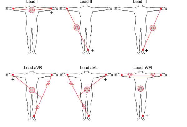- unipolarne – sygnał jest mierzony pomiędzy elektrodą „gorącą”, a punktem odniesienia, wyznaczonym przez uśrednienie sygnału z kilku innych elektrod;