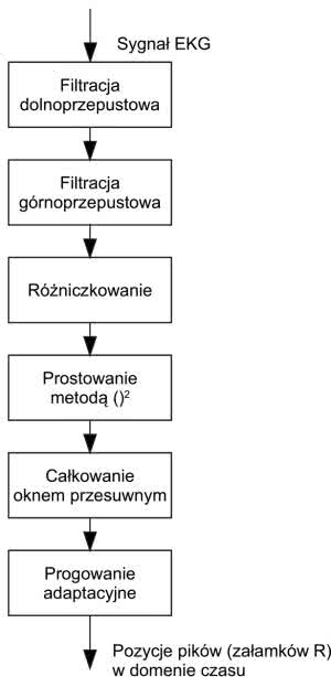 Prawdopodobnie najciekawszą funkcją układu MAX30003, której próżno szukać w innych front-endach elektrokardiograficznych spośród opisanych wcześniej produktów, jest blok sprzętowego wsparcia obliczeń odstępu R-R. Funkcja bazuje na znanym w świecie informatyki medycznej algorytmie Pan-Tompkins (rysunek 6), a jej implementacja w strukturze AFE znakomicie ułatwia tworzenie aplikacji wskazujących częstość rytmu serca (np. pulsometry sportowe) czy też zmienność tegoż rytmu (tzw. HRV – heart rate variability).