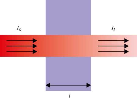 gdzie I0 oznacza natężenie promieniowania padającego na dany obiekt, zaś I to natężenie promieniowania po przejściu przezeń (rysunek 1).