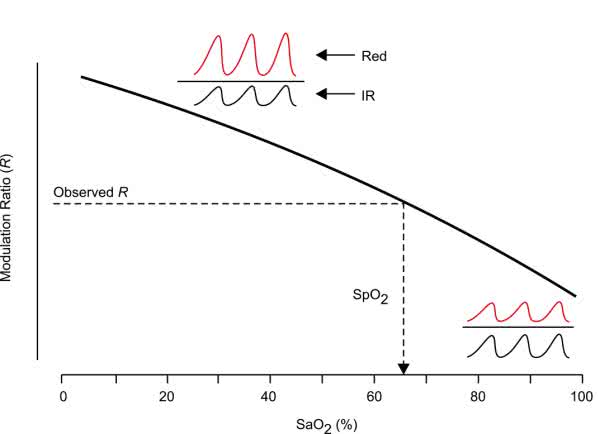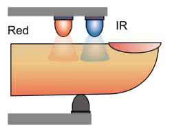 - znaczna różnica pomiędzy absorbancją światła czerwonego oraz podczerwonego dla oksyhemoglobiny i deoksyhemoglobiny – w dużym uproszczeniu można przyjąć, że modulacja sygnału dla oświetlenia tkanek diodą czerwoną będzie znacznie głębsza dla deoksyhemoglobiny i płytsza dla oksyhemoglobiny, zaś odwrotna zależność będzie obserwowana dla pasma NIR).