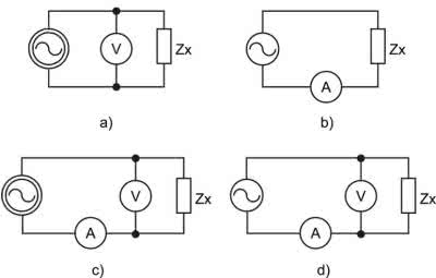 Pomiar impedancji, podobnie, jak rezystancji, należy do metod pośrednich, tj. bazujących na innych wielkościach fizycznych (w tym przypadku na dwóch – na napięciu oraz natężeniu prądu) do wyznaczenia poszukiwanej wartości. Teoretycznie możliwe jest zastosowanie jednej z czterech konfiguracji:
