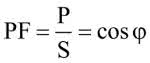 Sama moc pozorna nie daje jednak bezpośredniej informacji o udziale mocy czynnej i biernej w całkowitym bilansie energetycznym urządzenia. Niezwykle istotnym parametrem jest zatem współczynnik mocy PF (power factor), określający stosunek mocy czynnej do mocy pozornej (5):