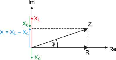 Mamy do czynienia z określonym kątem fazowym, którego znak oraz wartość wynikają z charakteru odbiornika: indukcyjna część reaktancji (XL) powoduje opóźnienie prądu względem napięcia, zaś pojemnościowa (XC) – opóźnienie napięcia względem prądu (rysunek 1).