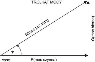 Ten sam kąt fazowy odnosi się także do trójkąta mocy (rysunek 3), określającego powiązania pomiędzy: