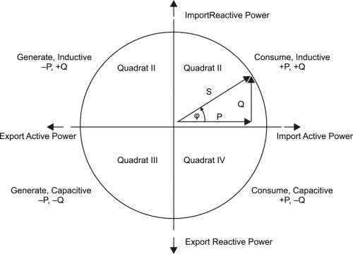 Warto zwrócić uwagę na fakt, że kąt fazowy pozwala rozróżnić nie tylko rodzaj obciążenia, ale także – co ciekawe – kierunek przepływu energii. W powszechnie przyjętym ujęciu kwadranty I i IV na płaszczyźnie P-Q (rysunek 4) odpowiadają za pobór mocy przez obciążenie (kąt fazowy pomiędzy –90° a +90°), zaś kwadranty II i III – wytwarzanie mocy.