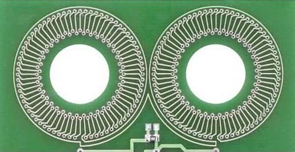 - Koszty – boczniki doskonale sprawdzają się w rozwiązaniach budżetowych, podobnie jak tańsze modele przekładników do montażu na PCB; profesjonalne cewki Rogowskiego są rozwiązaniami dość kosztownymi, choć gwoli ścisłości warto dodać, że istnieją metody na wykonanie takiego elementu w postaci… odpowiednio ukształtowanej płytki drukowanej (interesujący przykład pokazano na fotografii 1). Czujniki hallotronowe i mniejsze przekładniki należą natomiast do relatywnie tanich rozwiązań, zwykle niewiele droższych od dobrych boczników SMT.