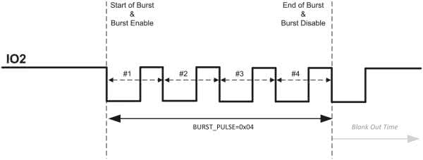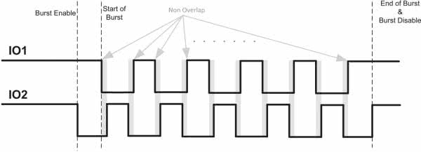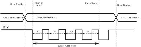 Kontroler stopnia wyjściowego obsługuje cztery tryby generowania paczek impulsów, określane jako IO_MODE0...3 i ustawiane za pomocą dedykowanego pola bitowego w rejestrze DEV_CTRL_3.