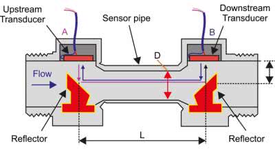 - gospodarce wodnej – do pomiaru przepływu cieczy w rurociągach (strumień cieczy zmienia czas powrotu echa zależnie od kierunku i prędkości przepływu medium).