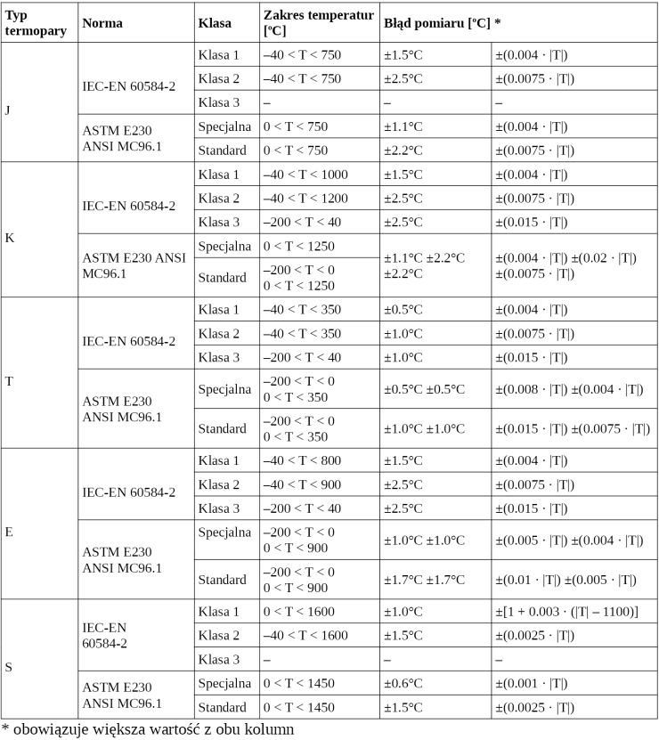 Warto zwrócić uwagę, że dokładność układu pomiarowego – determinowana zarówno przez właściwy tor kondycjonowania sygnału napięcia termopary, jak i zastosowany czujnik temperatury lokalnej używany do kompensacji zimnych końców – powinna być zoptymalizowana odpowiednio do dokładności samego czujnika.