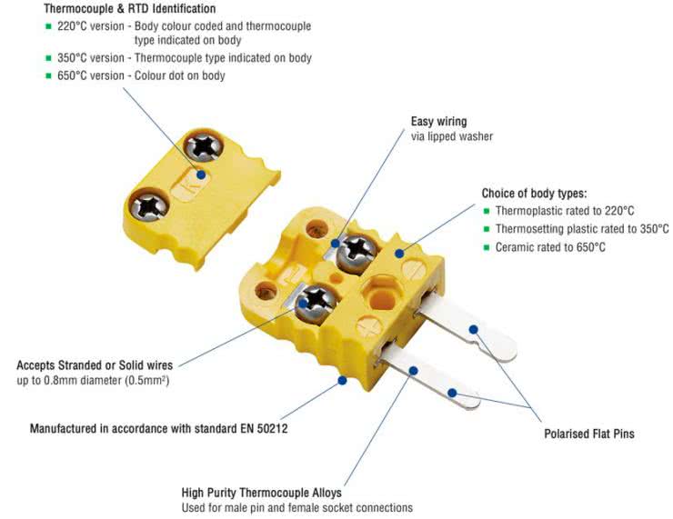 - konieczność stosowania przewodów kompensacyjnych lub przedłużających oraz specjalnych złączy, co ma na celu uniknięcie dodatkowych błędów pomiarowych, wprowadzanych do układu przez napięcia termoelektryczne generowane na każdym styku dwóch różnych metali.