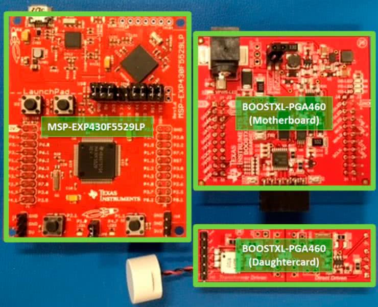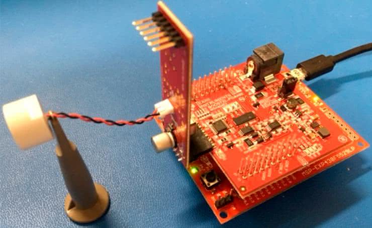 Synchronizacja jest możliwa dzięki zastosowaniu wspólnej szyny UART/one-wire UART i komend z grupy broadcastingu. Opisane w dokumencie metody pozwalają znakomicie zwiększyć uniwersalność systemu w porównaniu do prostej realizacji, wykorzystującej kilka rozdzielonych funkcjonalnie przetworników (co ma miejsce np. w tanich zestawach czujników parkowania). Dla osób zainteresowanych rozwojem aplikacji bazujących na PGA460 istotna będzie informacja, że producent opracował rozbudowany zestaw ewaluacyjny, składający się z płytki głównej (bazującej na mikrokontrolerze MSP430F5529), płytki front-endu oraz niewielkiej PCB wyposażonej w dwa różne przetworniki ultradźwiękowe wraz z układami dopasowującymi (fotografie 1 i 2).