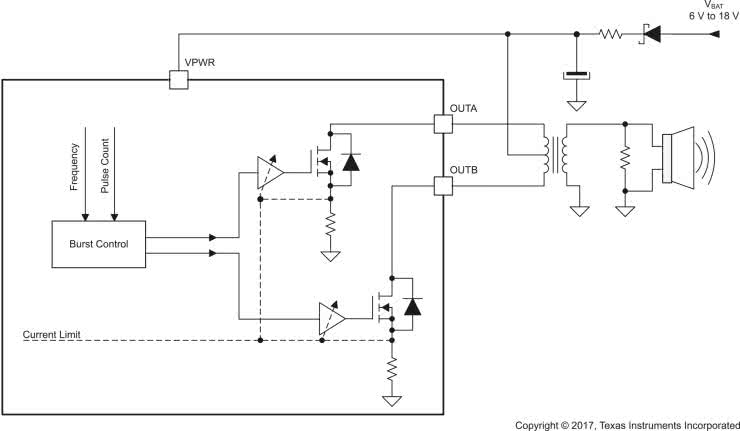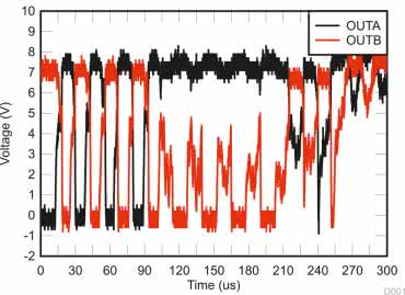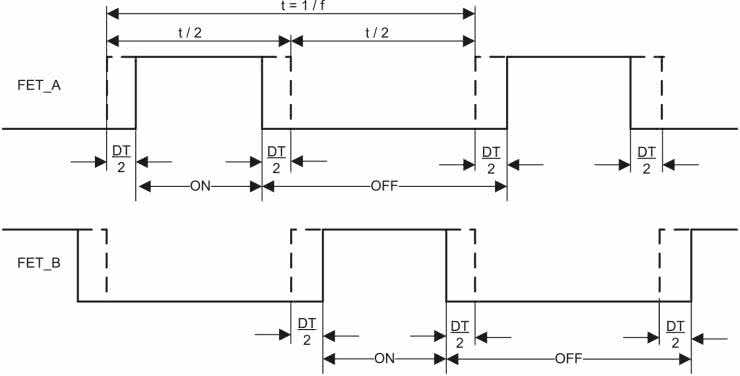 Wbudowany ogranicznik prądowy może być wyłączony w układach wykorzystujących zewnętrzne tranzystory MOSFET do sterowania transformatorem. Dodatkowo, front-end PGA460 umożliwia zaprogramowanie czasu martwego, tj. krótkiego odcinka czasu, odejmowanego po obu stronach każdego aktywnego półokresu przebiegu wyjściowego (rysunek 3).