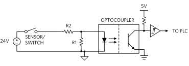 Najprostsza implementacja obwodów wejściowych wydaje się zadaniem nieszczególnie skomplikowanym. Aby zredukować napięcie wejściowe (np. z czujnika zbliżeniowego) z poziomu 24 V do 3,3 V (zasilającego procesor) można przecież zastosować dzielnik napięcia, wyposażony w diodę(-y) zabezpieczającą(-e) oraz szeregowy rezystor ograniczający prąd. Podobne rozwiązanie można wykorzystać także do sprzężenia wejścia napięciowego 0...10 V z niskonapięciowym przetwornikiem ADC, zaś do przetworzenia sygnałów z pętli prądowej (0...20 mA lub 4...20 mA) wystarczy użyć stabilnego rezystora, konwertującego natężenie prądu na spadek napięcia, łatwo mierzalny za pomocą ADC.