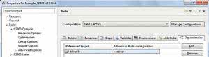 11. W oknie Project Explorer kliknij prawym klawiszem myszy na linię z nazwą projektu Example_F2802xLEDBlink. Z menu podręcznego wybierz Properties→Build→Dependencies (rysunek 7).