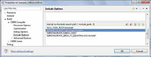 13. W oknie Project Explorer kliknij prawym klawiszem myszy na linię z nazwą projektu Example_F2802xLEDBlink. Z menu podręcznego wybierz Properties→Include Options (rysunek 8).