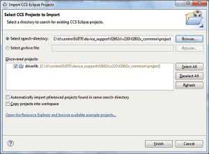 - W standardowej lokalizacji pakietów dla poszczególnych serii układów procesorowych rodziny C2000. Dla serii Piccolo F2802x jest to ścieżka do ostatniej wersji pakietu C:TI controlSUITEdevice_supportf2802xv220 f2802x_common