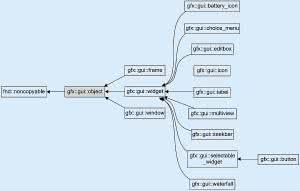 Klasa object jest podstawową klasą bazową, z której dziedziczą wszystkie pozostałe klasy biblioteki graficznej. Implementuje ona podstawowy mechanizm slotów i sygnałów wykorzystywanych w aplikacji do podłączania się pod poszczególne zdarzenia zgłaszane przez bibliotekę graficzną.