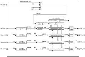 Dokładny opis liczników można znaleźć w dokumentacji technicznej Reference manual RM0008 (CD00171190. pdf). Jest tam pokazany schemat blokowy licznika. Dla łatwiejszego zrozumienia zasady jego budowy i działania, na rysunku 1 przedstawiono ten właśnie schemat, ale z pominięciem mniej istotnych szczegółów.