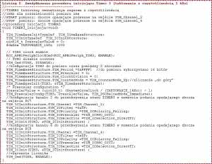Jak poprzednio obsługa timera oparta została o procedury z biblioteki STM-a.