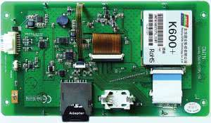 Są też moduły przeznaczone do współpracy z systemem Android, wyposażone w gniazda USB, moduł Ethernetu i WiFi. Na fotografii 1 pokazano płytkę wyświetlacza DMT 80480T070 o rozdzielczości 800×480 pikseli. Widać tu moduł K600+, gniazdo karty SD, gniazdo baterii litowej do podtrzymywania zegara RTC oraz układy interfejsu RS232/UART (tryb pracy jest wybierany przełącznikiem) i elementy stabilizatora impulsowego.