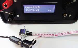 Do gniazda zasilającego trzeba dołączyć źródło napięcia stałego z zakresu 5...15 V i obciążalności ok. 250 mA. Ja zasiliłem moduł wyświetlacza z zasilacza prądu stałego +12 V. Pobór prądu z trakcie pracy wynosił 210...220 mA. Tak zasilony moduł można dołączyć standardowym kablem do komputera PC wyposażonego w port RS232 lub w przejściówkę USB/RS232.