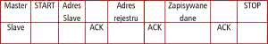- Wysłaniu adresu Slave z bitem R/W=0 (i odebraniu potwierdzenia ACK).