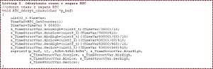 Procedura RTC_Odczyt_czasu() odczytuje zawartość licznika RTC_CNT i zamienia ją na ilość sekund, minut i godzin, które upłynęły od początku doby (listing 2). Procedura używa struktury s_TimeStructVar do przechowywania skonwertowanej liczby sekund odczytanej z rejestru RTC_CNT na liczbę dziesiątek i jednostek godzin, minut i sekund, które upłynęły od początku doby, czyli godziny 00:00:00. Dodatkowo, w buforze wskazywanym przez *p_buf jest umieszczany łańcuch z informacją o odczytanym czasie przygotowany do wyświetlenia na wyświetlaczu LCD.