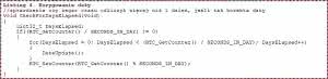 Najpierw sprawdza ona czy wartość rejestru RTC_CNT jest większa niż SECONDS_IN_DAY (86400). Jest to liczba sekund odliczanych w czasie 24 godzin. Jeżeli odczytana wartość przekracza SECONDS_IN_DAY w pętli jest wywoływana procedura korekty daty, czyli doliczenia kolejnego dnia.
