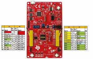Urządzenia peryferyjne z liniami sygnałowymi mikrokontrolera CC3200 łączymy przy pomocy przewodów połączeniowych. Jest to możliwe, ponieważ piny mikrokontrolera CC3200 zostały wyprowadzone na złącza 2x20 modułu LaunchPad. Opis wyprowadzeń pokazano na rysunku 3.