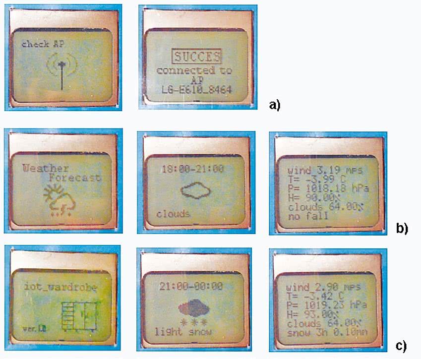 Fotografia 4. Sterownik podczas pracy w trybach: a) check access point, b) normal work, c) info screen