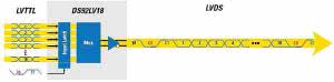 Interfejs LVDS dołączony do FPGA pozwala uzyskać wysokie szybkości transmisji na mniejszej liczbie ścieżek umieszczonych na płytce drukowanej. Jednocześnie zmniejsza poziom interferencji elektromagnetycznych, pobór mocy i wrażliwość systemu na szumy.