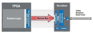 W systemach SerDes z FPGA funkcje analogowe (jak odzyskiwanie zegara i danych, kondycjonowanie sygnału, synteza zegara i usuwanie jitteru) są realizowane przez zewnętrzne interfejsy warstwy fizycznej.