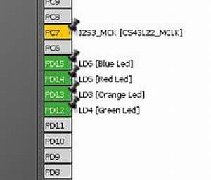 - Zielonym, gdy do wyprowadzenia jest przypisana i zdefiniowana funkcja (na przykład sygnał modułu I²C lub wejście/wyjście GPIO).