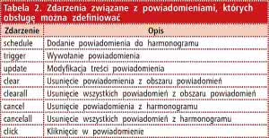 Tabela 1. Atrybuty obiektu powiadomienia, potrzebne m.in. w momencie deklarowania nowego powiadomienia z użyciem funkcji schedule()