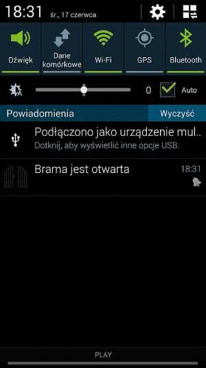 To ten drugi komunikat, również przesyłany przez interfejs Bluetooth, będzie powodował generowanie powiadomień, a nie sam przycisk w aplikacji. W ten sposób brama będzie mogła być sterowana na różne sposoby (np. również bezpośrednio - ręcznie), a jej stan będzie cały czas monitorowany przez aplikację pilota, tak jak to pokazano na rysunku 1.