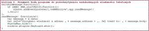 Mimo zastosowanego uproszczenia, program działa poprawnie, gdyż trochę czasu potrzebne jest na wczytanie kontaktu z książki adresowej, co sprawia że zanim dojdzie do formułowania treści komunikatu, potrzebne dane są już przygotowane.