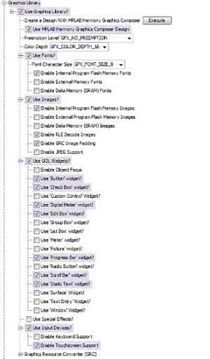 Aby ułatwić projektowanie ekranów interfejsu, do pakietu MPLAB X IDE dostarczono wtyczkę Graphic Display Designer X (GDDX), która umożliwia umieszczanie na projektowanych ekranach graficznych obiektów (widżetów), definiowanie interakcji pomiędzy tymi elementami i generowanie kodu wynikowego dla tworzonego projektu.
