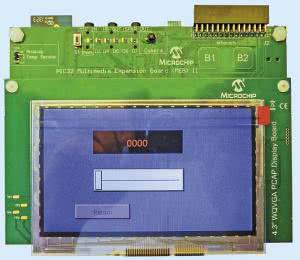 Pojemnościowy panel dotykowy jest obsługiwany przez sterownik MTCH6301. Komunikacja z mikrokontrolerem odbywa się za pomocą interfejsu I²C.