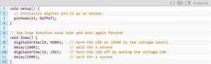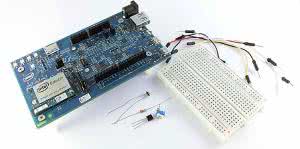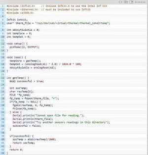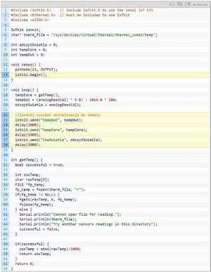 Na początek wgrałem standardowy kody migania diodą: Wstyd jednak wykorzystywać tak rozbudowaną platformę do migania 1 diodą (rysunek 3). Dlatego zabrałem się za stworzenie kolejnego programu. Miała to być prosta stacja pogodowa, która zbierze następujące informacje z czujników podłączonych do Edisona: