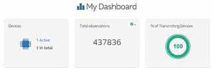 Cały program wygląda tak, jak pokazano na rysunku 10. Po wgraniu programu dane zaczną być regularnie wysyłane do chmury. Będzie to widoczne zaraz po zalogowaniu, na stronie głównej. Znajdziemy tam informacje o liczbie urządzeń podłączonych do naszego konta, które wysyłają dane oraz ilości próbek, które jakie zgromadzono (rysunek 11).