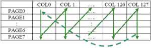 Po zapisaniu liczników każdy dostęp do pamięci RAM powoduje inkrementowanie licznika kolumn. Jeżeli licznik osiągnie wartość 127, to następny dostęp (zapis) do pamięci RAM powoduje wyzerowanie licznika kolumn, a licznik stron pozostanie bez zmian. Żeby go zmienić trzeba użyć komendy Set Page Address for Page Addressing Mode.