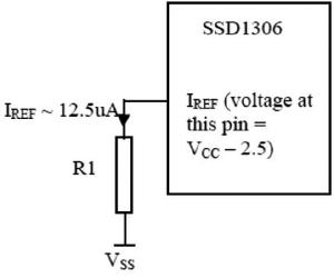 Wartość napięcia wyjściowego określa się za pomocą rezystora zewnętrznego dołączonego do wyprowadzenia IREF. Napięcie na tym wyjściu jest równe Vcc-2,5, gdzie Vcc jest napięciem zasilającym matrycę (rysunek 10). W opisywanym wyświetlaczu rezystor R1 ma wartość 1 MV i powinien wymuszać prąd o wartości ok 12,5 µA ±2 µA.