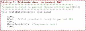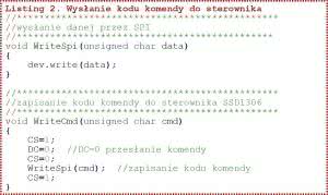 Do sterowania wyświetlaczem będą nam potrzebne dwie użyteczne procedury: zapisania rejestrów stepujących, czyli kodu komendy i ewentualnie jej argumentów, oraz zapisania danej do pamięci obrazu wyświetlacza - zamieszczono je na listingach 2 i 3.