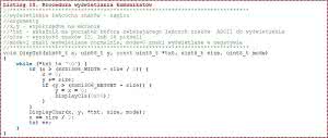 Mając procedurę wyświetlania jednego znaku o dowolnych współrzędnych można napisać procedurę wyświetlającą łańcuch znaków od określonej pozycji. Na listingu 10 pokazano taką procedurę - void DispTxt() przyjmującą następujące argumenty: