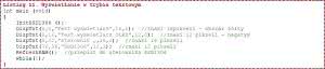 Jeżeli kolejny znak nie zmieści się w całości w linijce, to tekst jest automatycznie przenoszony na początek kolejnej linijki (CR, LF). Efekt działania krótkiego fragmentu programu z listingu 11 jest pokazany na rysunku 12.