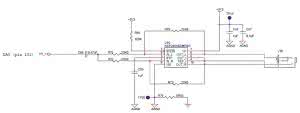 Jednym z elementów interfejsu użytkownika może być układ odtwarzający dźwięki. W module SK-S7G2 umieszczono monofoniczny tor audio składający się ze wzmacniacza małej częstotliwości o wzmocnieniu ustalanym przez zewnętrzne rezystory oraz standardowego gniazda jack 3,5 mm. Wejście toru jest połączone z wyjściem przetwornika C/A mikrokontrolera (rysunek 8).