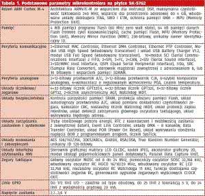 Wyposażenie w zasoby (pamięć) i układy peryferyjne jest jak na mikrokontroler ogólnego przeznaczenia imponująca. Jeżeli dodamy do tego wydajny rdzeń ARM Cortex- M4 z jednostką FPU, to okaże się, że dysponujemy elementem mogącym wykonywać bardzo zaawansowane zadania. Podstawowe parametry mikrokontrolera zostały umieszczono w tabeli 1.